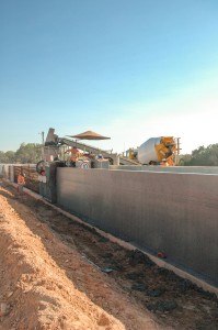 After perfecting the concrete mix, the 21-person crew produced a high-quality product that required little finishing. Their records for a single day’s pours were 274 m on the wall and 251 m on the base. In total, they poured over 15,600 linear meters (51,151 ft) of concrete. “For us, the slipform process has been quite successful. Using slipforming has really accelerated the process for us and it’s worked out really well,” said John.