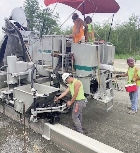 Donna Bartholomew owns A&K Slipforming, where she employs sixty people. A&K has been in business for twenty-three years and complete stamped concrete, brick paver installation, and slipform work throughout New York, and into Vermont, Connecticut, and Pennsylvania. A&K runs seven crews, including the eight-man team that slipformed the Taconic Parkway job. The Power Curber 5700-C is relatively new to the slipform crew, but Mark has been running competitive machines for years. Regarding his new relationship with Power Curbers, he emphasized, “the service has been outstanding. You’ve impressed me with the quality of the mold made, the quality of the machine. I’m impressed with how well it worked.”